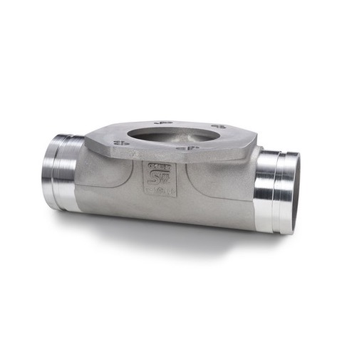 5" ALUM. BOTTOM DROP TEE GRV X GRV, LOW PROFILE